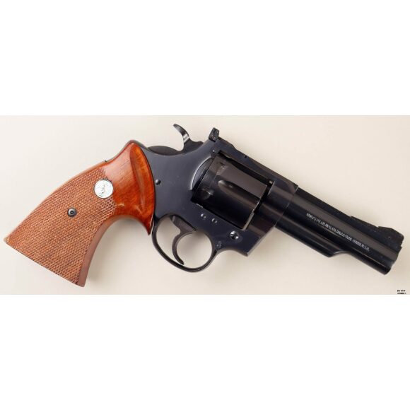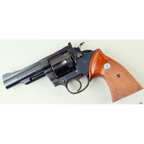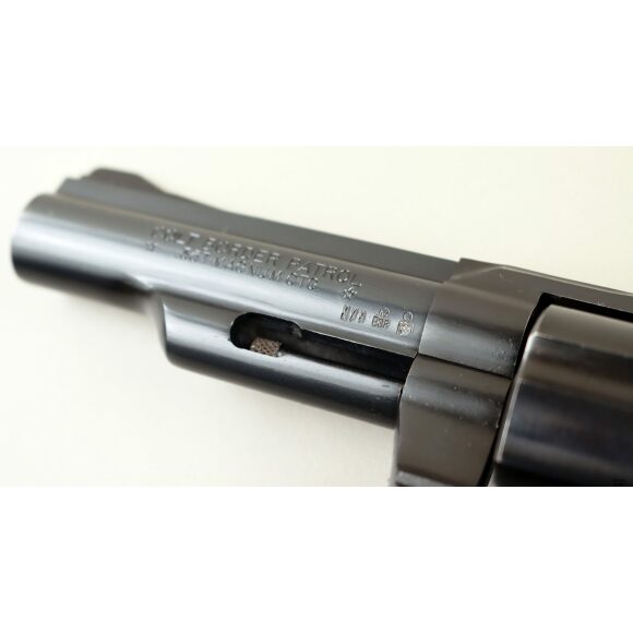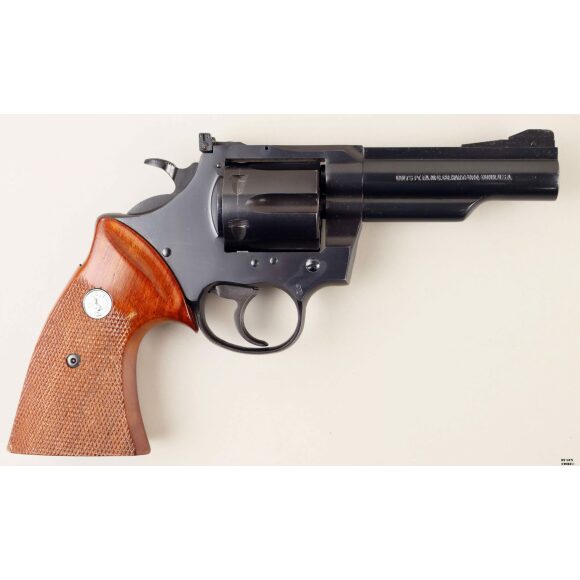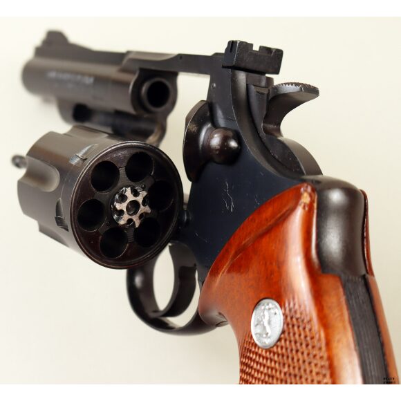 Anno 1973 di produzione nello stabilimento di Hartford per questo revolver Colt modello Border Patrol. Anno 1974 di bancatura presso il BNP di Gardone Valtrompia. Brunitura originale, canna a specchio da 4″, mire regolabili. Ottimo pezzo per collezione a tema o per divertimento al poligono. Calibro .357 Magnum. Arma comune.