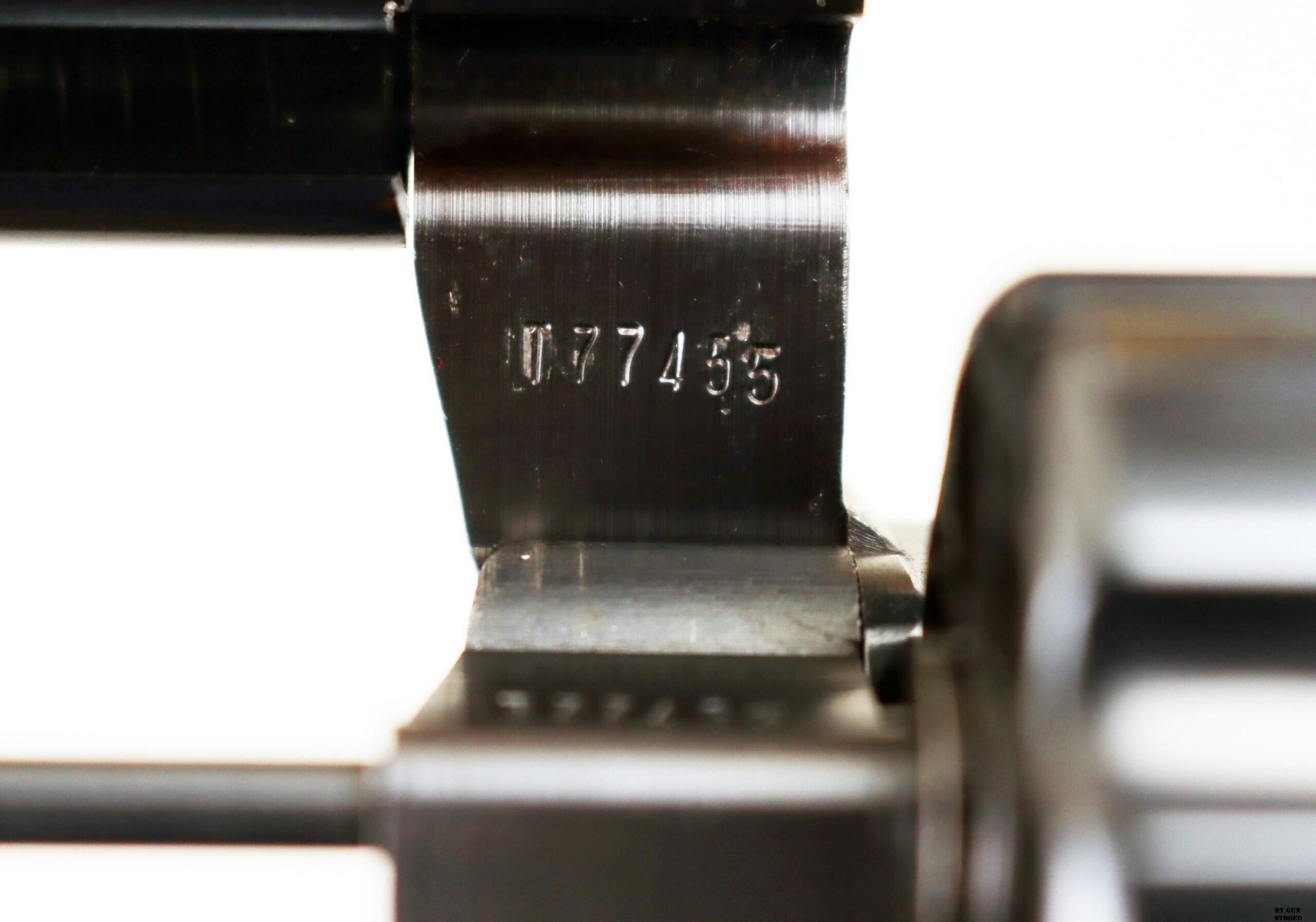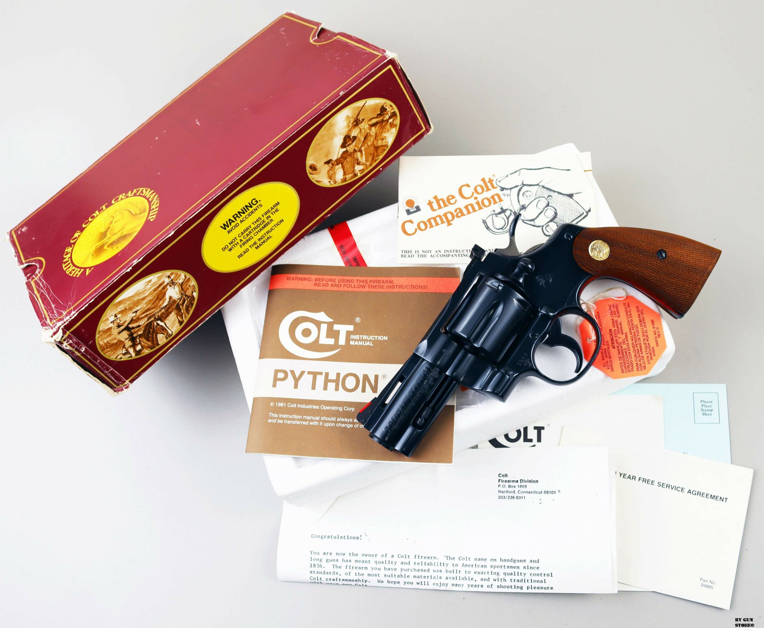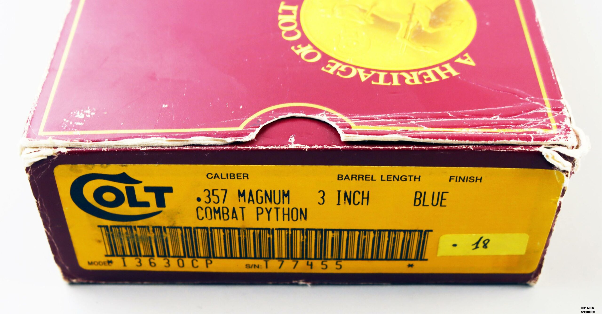 Anno 1988 di produzione, secondo i registri Colt, per questo, non raro, non molto raro, ma super raro revolver Colt modello Combat Python. Nel 1988, secondo la storia, nello stabilimento di Hartford in Connecticut sono stati prodotti 500 esemplari Combat Python di cui 300 furono acquistati dalla Lew Horton Distribution Company, Inc. di Southboro, Massachusetts. Il modello Combat si distingue per una canna da 3″ al posto delle canoniche misure da 2.5″ e 4″ e per la scritta COMBAT rullata di lato. I rimanenti 200 pezzi prodotti pare siano stati ceduti al mercato europeo (per la Germania il distributore Franconia, per l’Italia il distributore De Marchi di Torino). Circa 70 pezzi arrivarono in Italia. A distanza di quasi quarant’anni trovarli in condizioni perfette, come questo matricola T77455, è praticamente una chimera. Negli Stati Uniti hanno raggiunto quotazioni inimmaginabili poichè la domanda e l’offerta è basata su numeri irrisori. L’arma che presentiamo è in condizioni splendide, praticamente da occhiali da sole ed è stata importata e bancata al BNP di Gardone Valtrompia proprio nel 1988 (AT). La brunitura è perfetta e originale, meccanica e timing sono perfetti e la canna è a specchio. Oltre l’arma è presente anche la sua scatola originale, coeva e monomatricola. Inoltre è presente il libretto e vari documenti. Un set unico e di difficile replica per condizione e completezza, matricola prensente e verificabile sul sito Colt (https://www.colt.com/serial-lookup/). Calibro 357 Magnum, arma comune