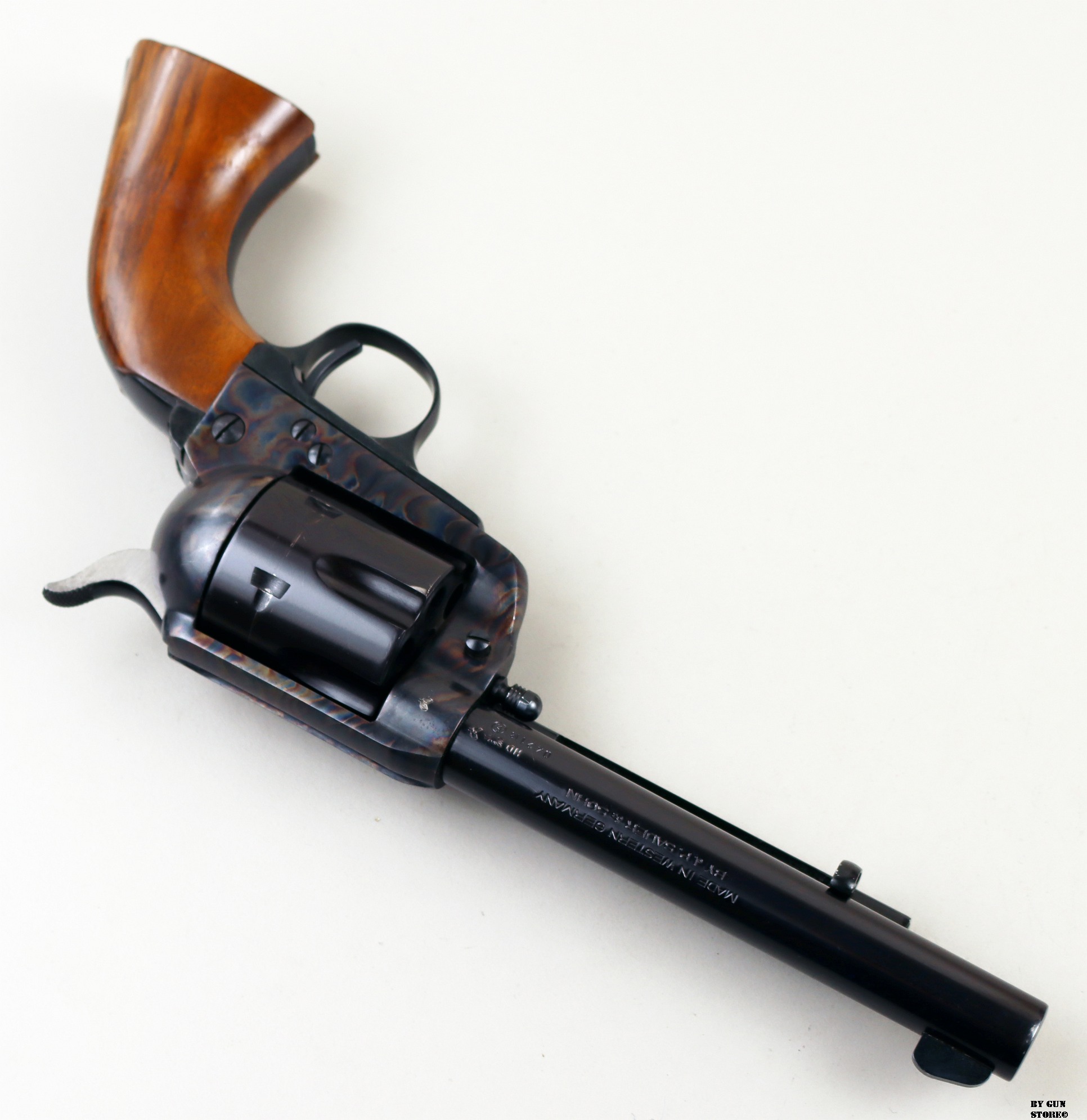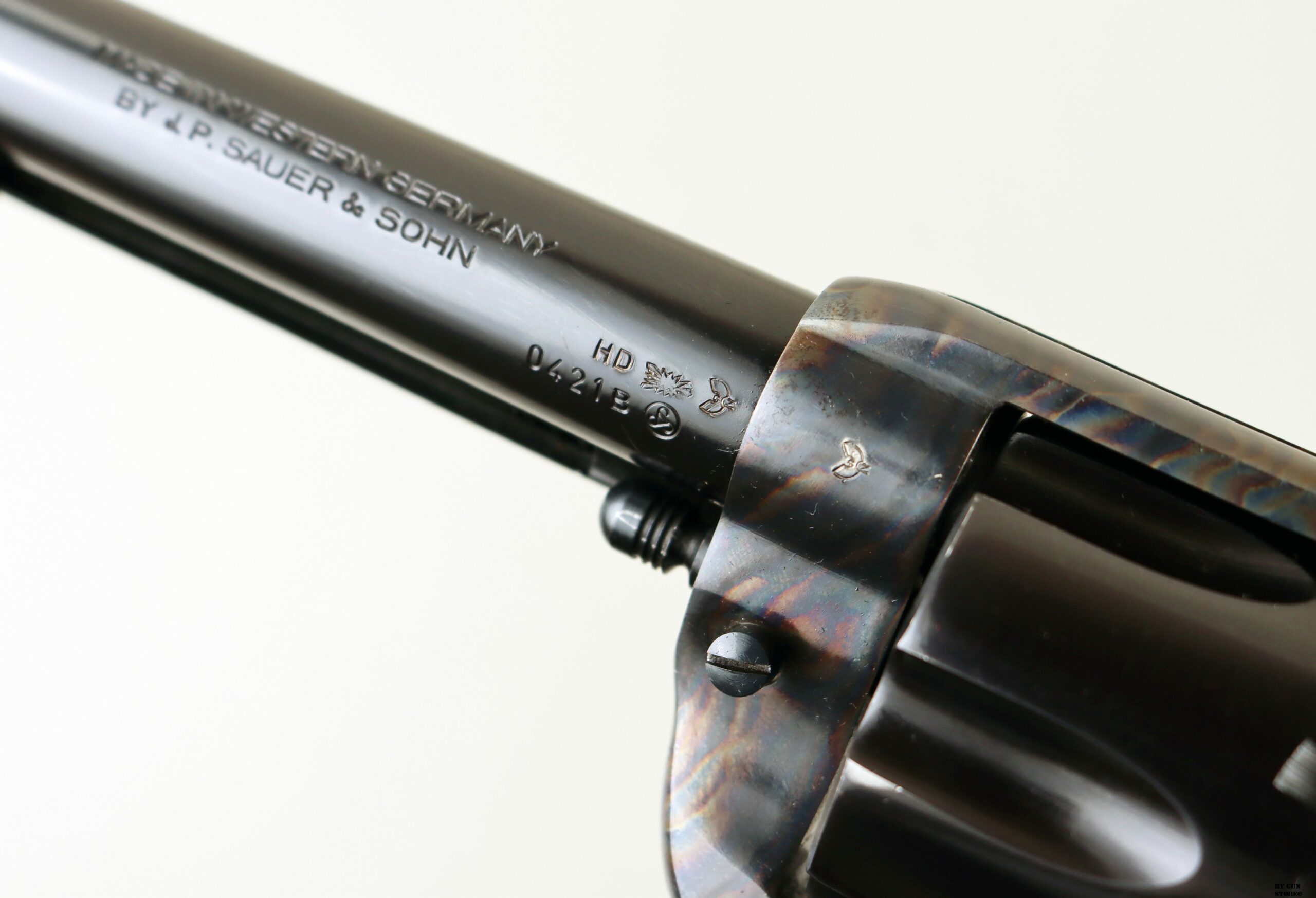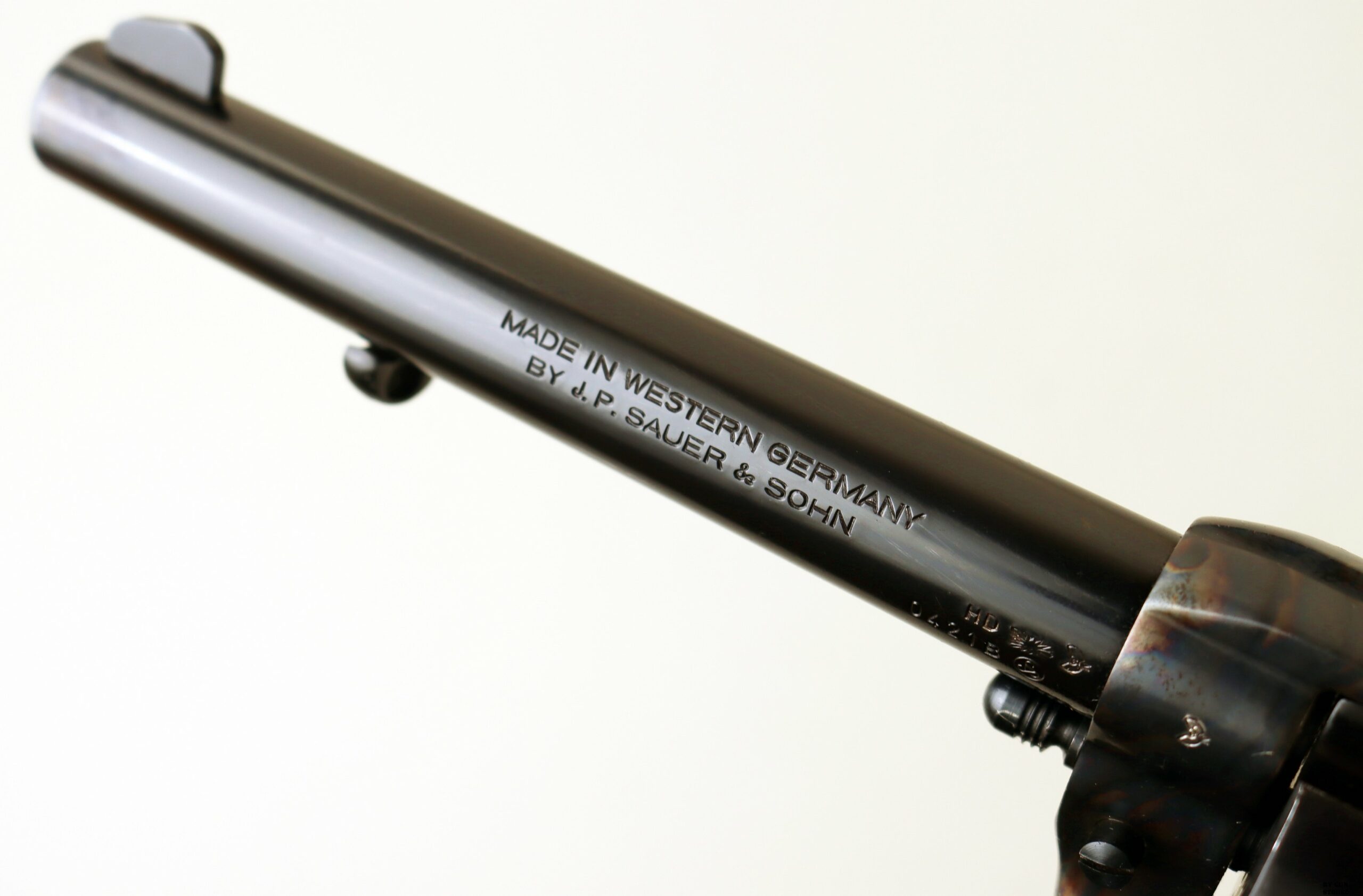 Anno 1973 di produzione e bancatura (HD) per questo revolver single action prodotti in “Western Germany” dalla J.P. Sauer & Sohn. Una Sauer Western a sei colpi in condizioni pari al nuovo, dato che proviene da collezione. Meccanica e canna ottime. Brunitura completa, arma comune, calibro .357 Magnum.
