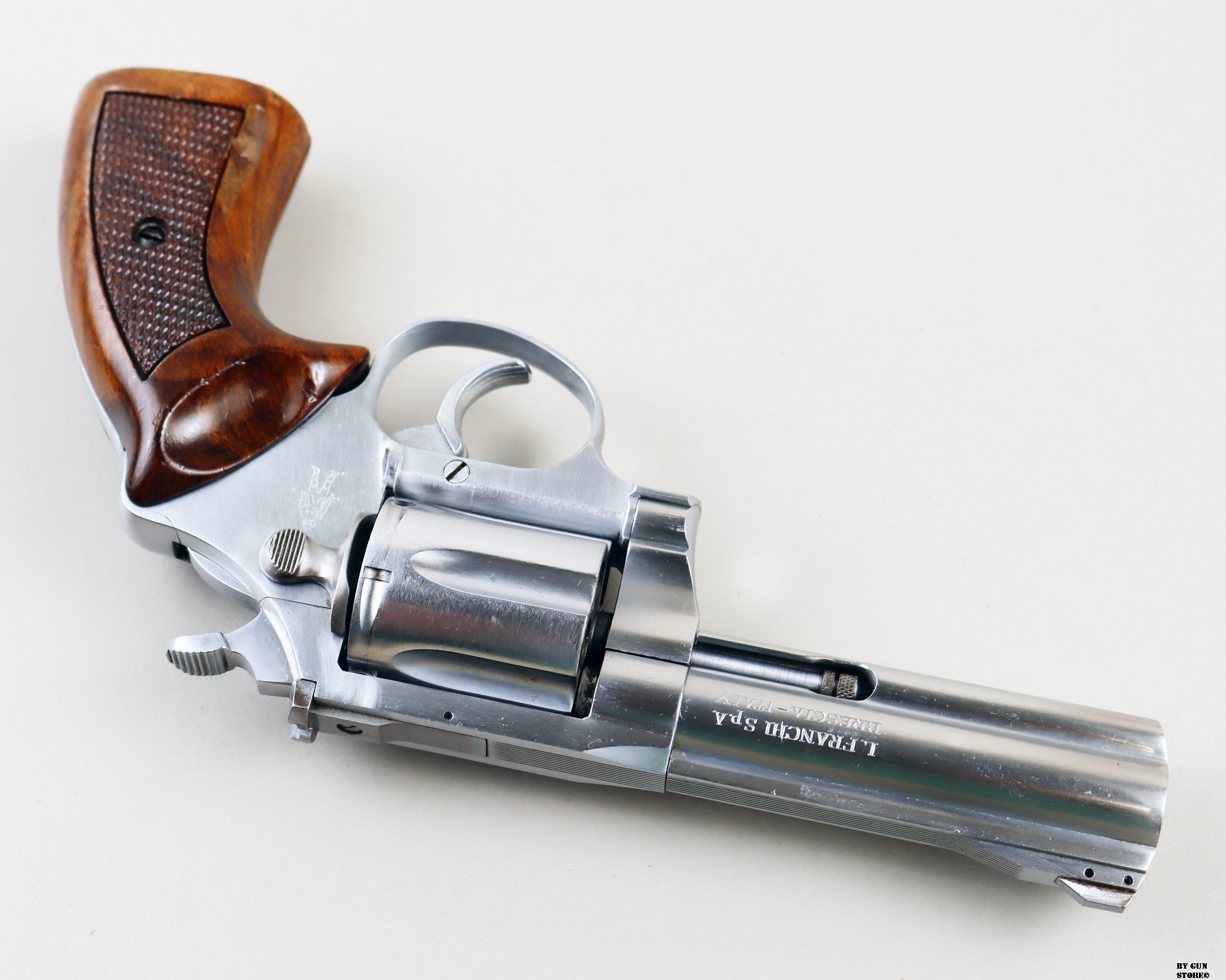 Anno 1987 (AS) di produzione e bancatura presso il BNP di Gardoe Valtrompia per questo revolver Luigi Franchi modello RF83. Versione inox con canna da 4″. Mira regolabile, canne e azione sono ottime. Calibro .38 special, arma comune.