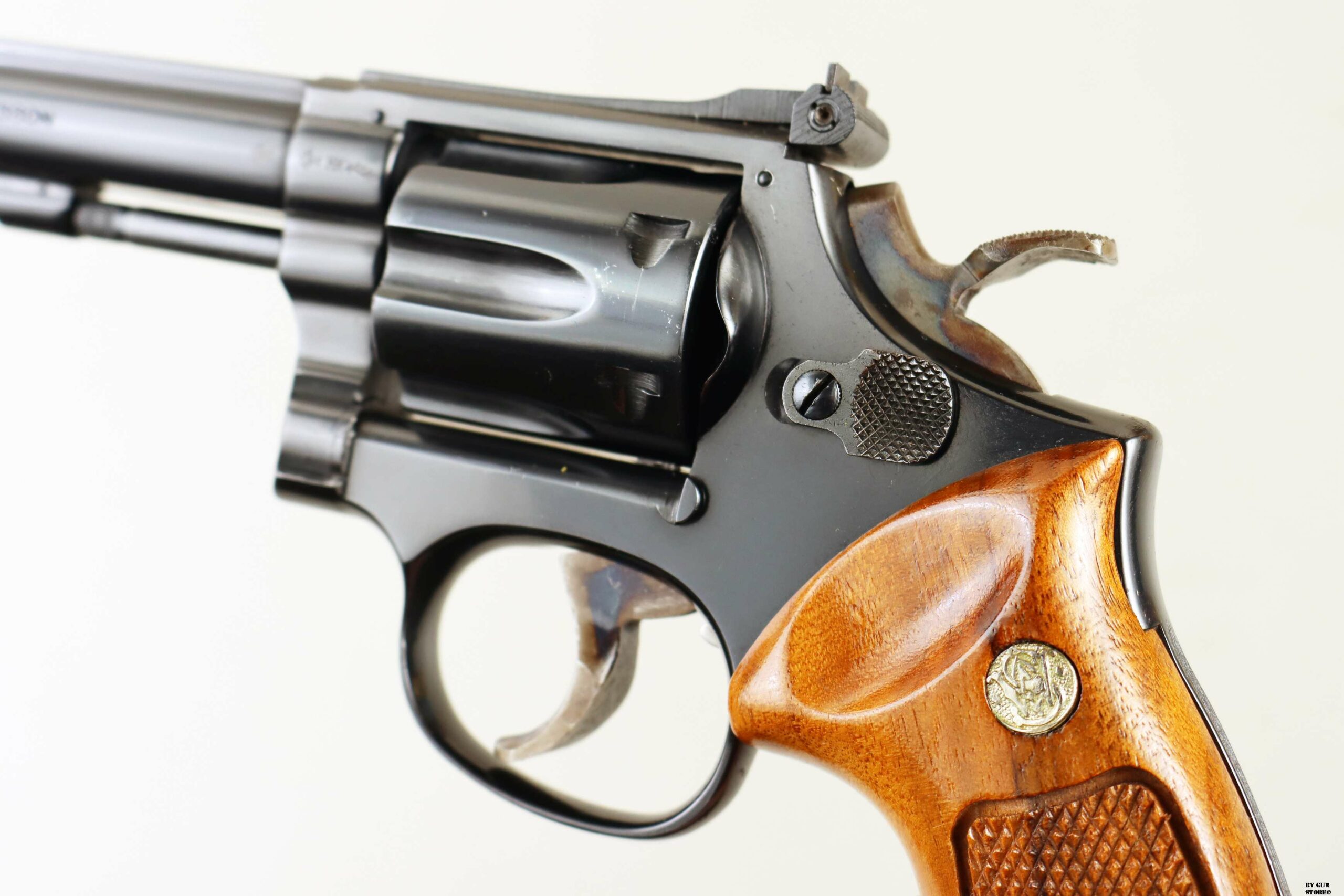 Anno 1979 di bancatura per questo splendido revolver Smith & Wesson modello 12-4 in calibro .22 long rifle. Canna spinata a specchio da 6″, timing ottimo. Brunitura originale e completa con meccanica perfetta. Cane e grilletto target tartarugati. Guancette in legno di rosa con zigrini ottimi. Arma dal cuore sportivo 12_00040s3