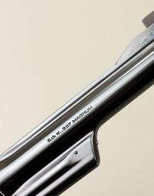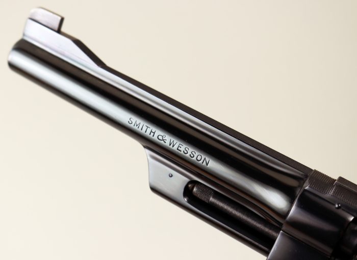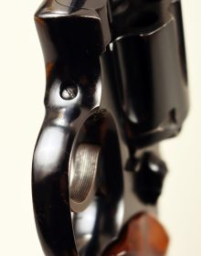 Raro revolver Smith & Wesson nel modello 27 prodotta a partire dal 1957 fino al 1960 con l’introduzione della variante 27-1. Prefisso matricolare S e arma caratterizzata dalla “quarta” vite posta all’esterno del ponticello. Brunitura originale, canna da 6″ , canna spinata e cane e grilletto tartarugati. Guancette in legno di rosa con “diamonds grips” corretti all’interno dello zigrino e tolti nelle versioni successive. Vero pezzo da collezione. Calibro .357 Magnum e arma che gode di classificazione ad uso sportivo.