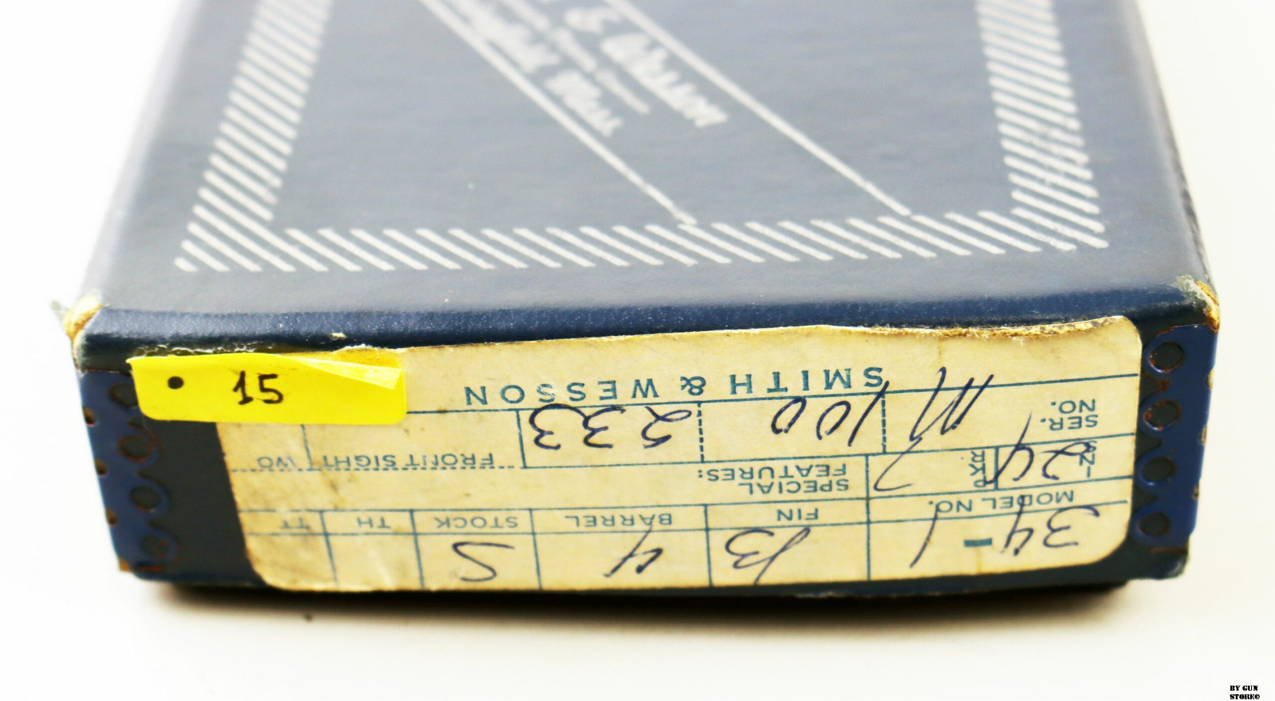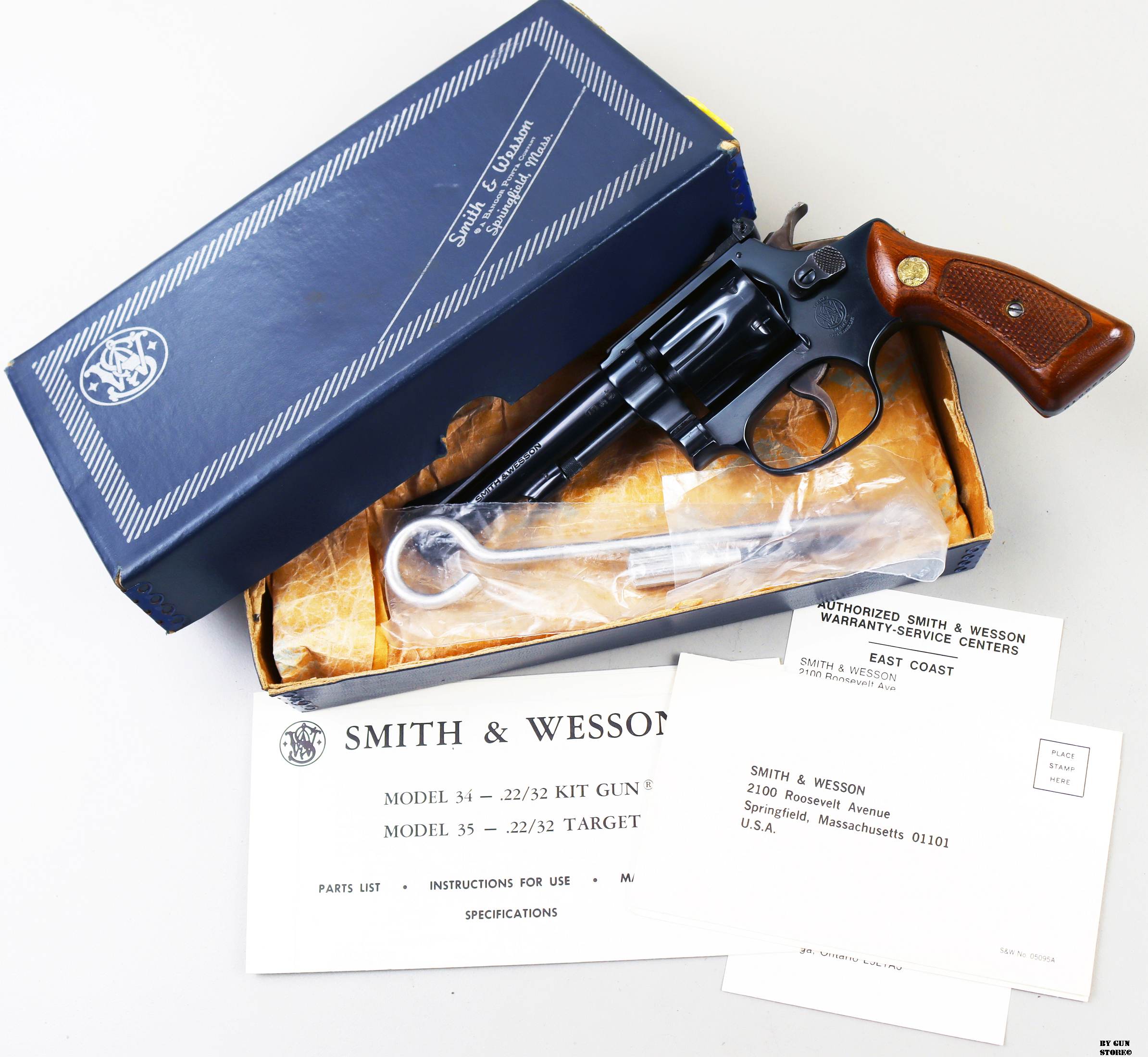 Anno 1978 (AD) di bancatura presso il BNP per questo ottimo revolver Smith & Wesson modello 34-1 Kit Gun. Tacca di mira regolabile, brunitura completa e originale, guancette in legno. Canna e azione sono ottime. Arma completa della sua scatola matricolata, documenti e kit di pulizia. Ottimo pezzo da collezione, arma comune.