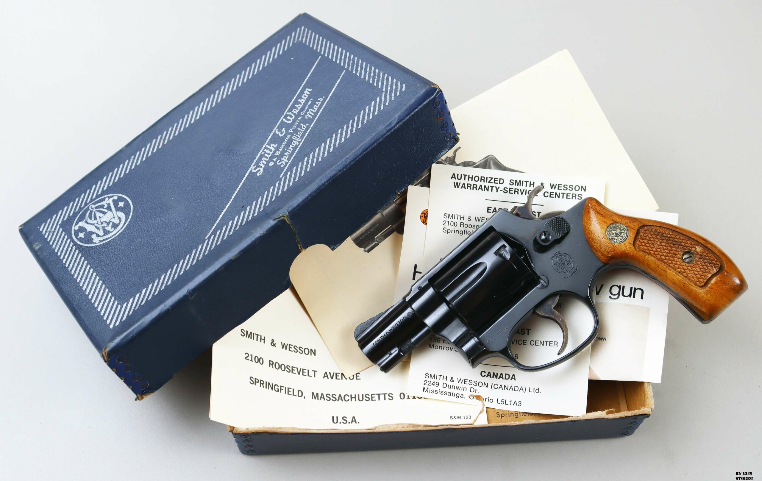 Arma proveniente da collezione per questo splendido revolver per difesa personale made in S&W. Una modello 36 nella classica finitura brunita con tamburo a 5 colpi. Meccanica ottima, canna a specchio spinata con ottime rigature. Dotazione completa di scatola e documenti. Arma comune. Calibro .38 special.