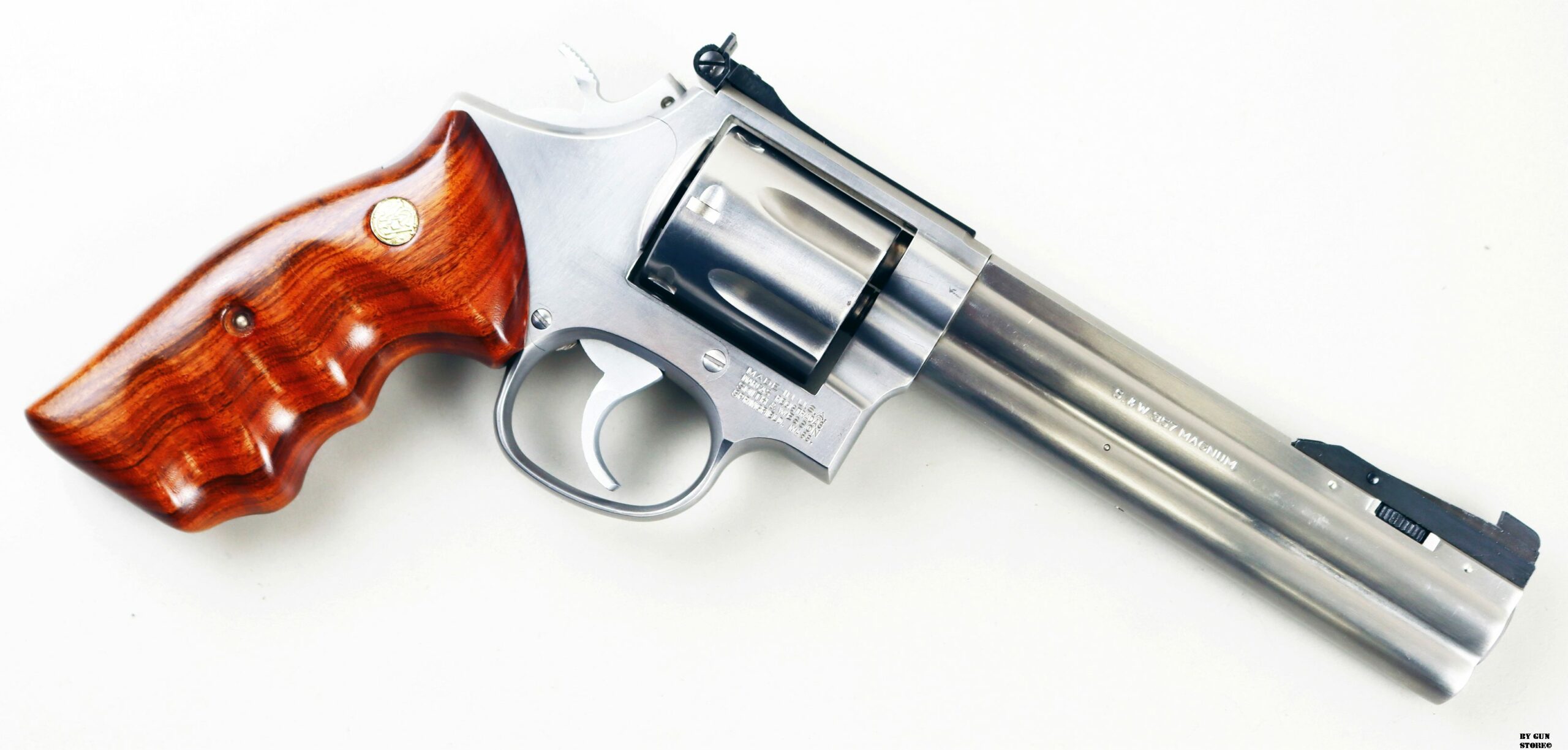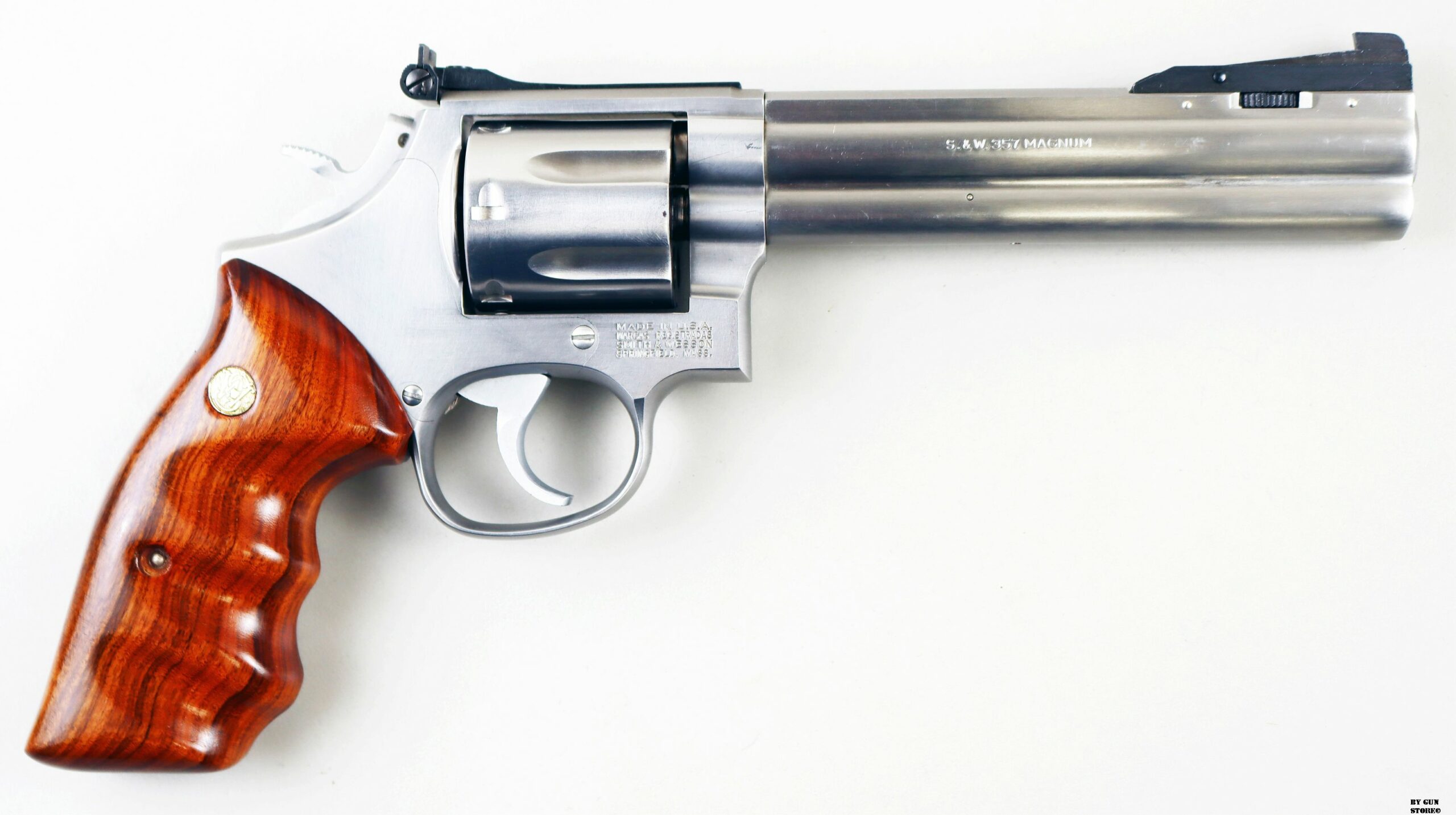 Ottimo revolver Smith & Wesson modell 686-3. Si dice che questa sia la versione migliore tra tutte quelle prodotte. E’ chiamato anche “Distinguished Combat Magnum”, nasce nel 1980 con un telaio del tutto innovativo, battezzato “L”. Questo, proveniente da collezione è veramente in ottime condizioni. Canna, meccanica e azione sono ottime. Guancette originali in legno sagomato con medaglioncini oro S&W. Versione con mirino regolabile in quattro posizioni per il tiro alla silhouette. Calibro .357 Magnum e classificazione ad uso sportivo.