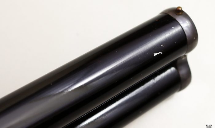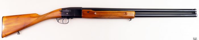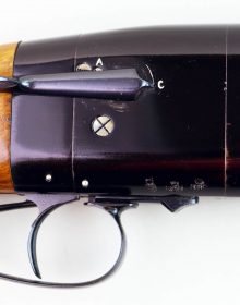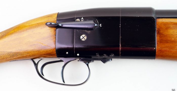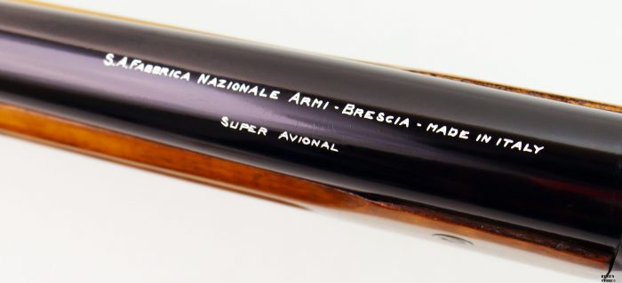 Anno 1950. Condizioni eccellenti per questo sovrapposto prodotto Società Anonima Fabbrica Nazionale Armi o, semplicemente, FNA. Made in Italy con la particolarità della carcassa, della culatta e delle canne che sono completamente in alluminio (l’alluminio usato è chiamato Super Avional ) e il suo peso è di 2,180 kg. (veramente leggerissimo). Le uniche parti in acciaio sono la chiave di apertura, i grilletti, la meccanica interna, il ponticello, la sicura ed i tenoni di chiusura. Astina ed il calcio sono ovviamente in legno in legno. Caratteristica è la sua apertura perchè è a scorrimento e non basculante. Canne da 70 cm. a specchio, meccanica perfetta, legni privi di mancanze.
